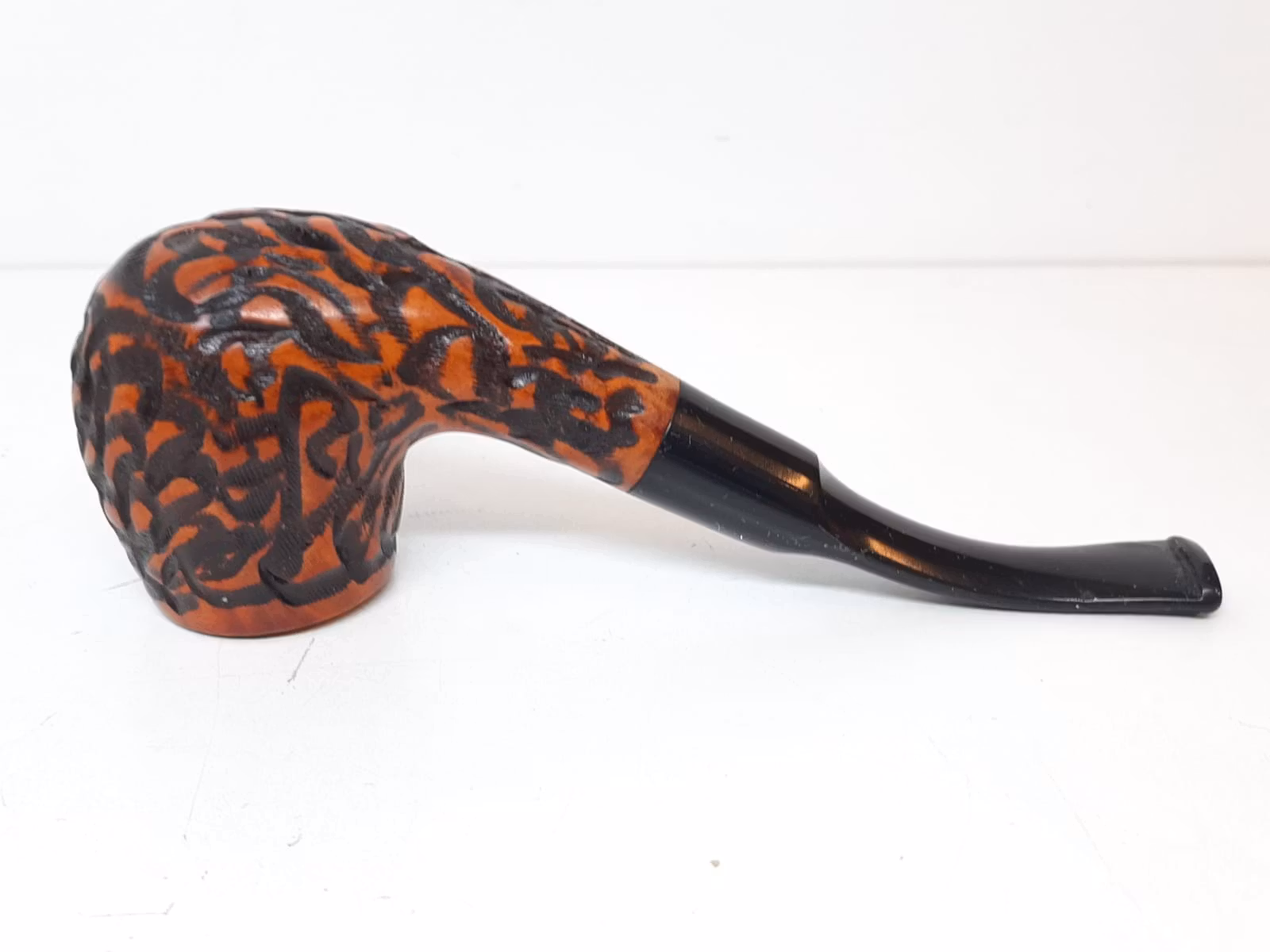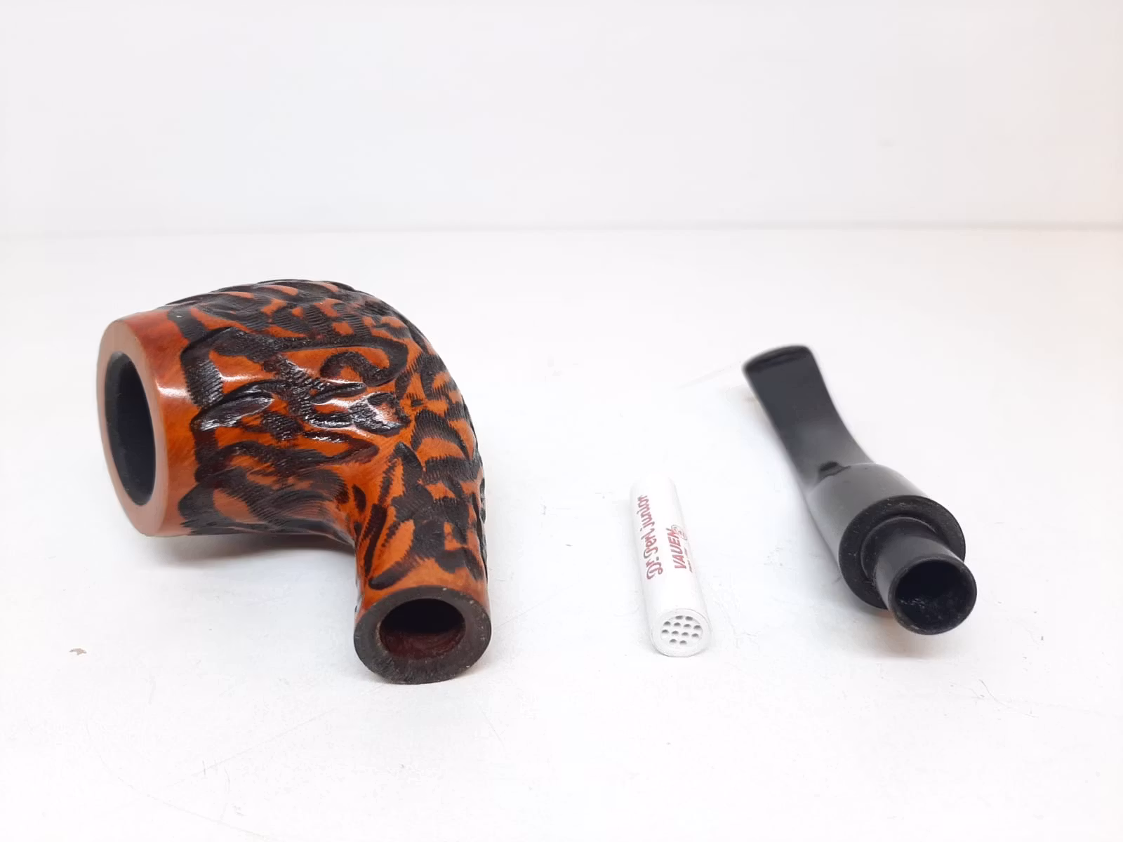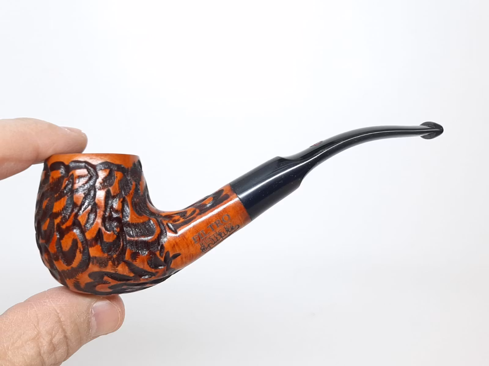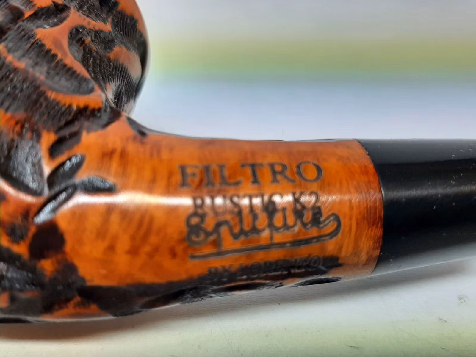 Du köper en pipa av det italienska märket Lorenzo. Pipan är tillverkad av äkta Briarträ. På undersidan av pipan finns texten "FILTRO RUSTIC K2 Spitfire" inristat.