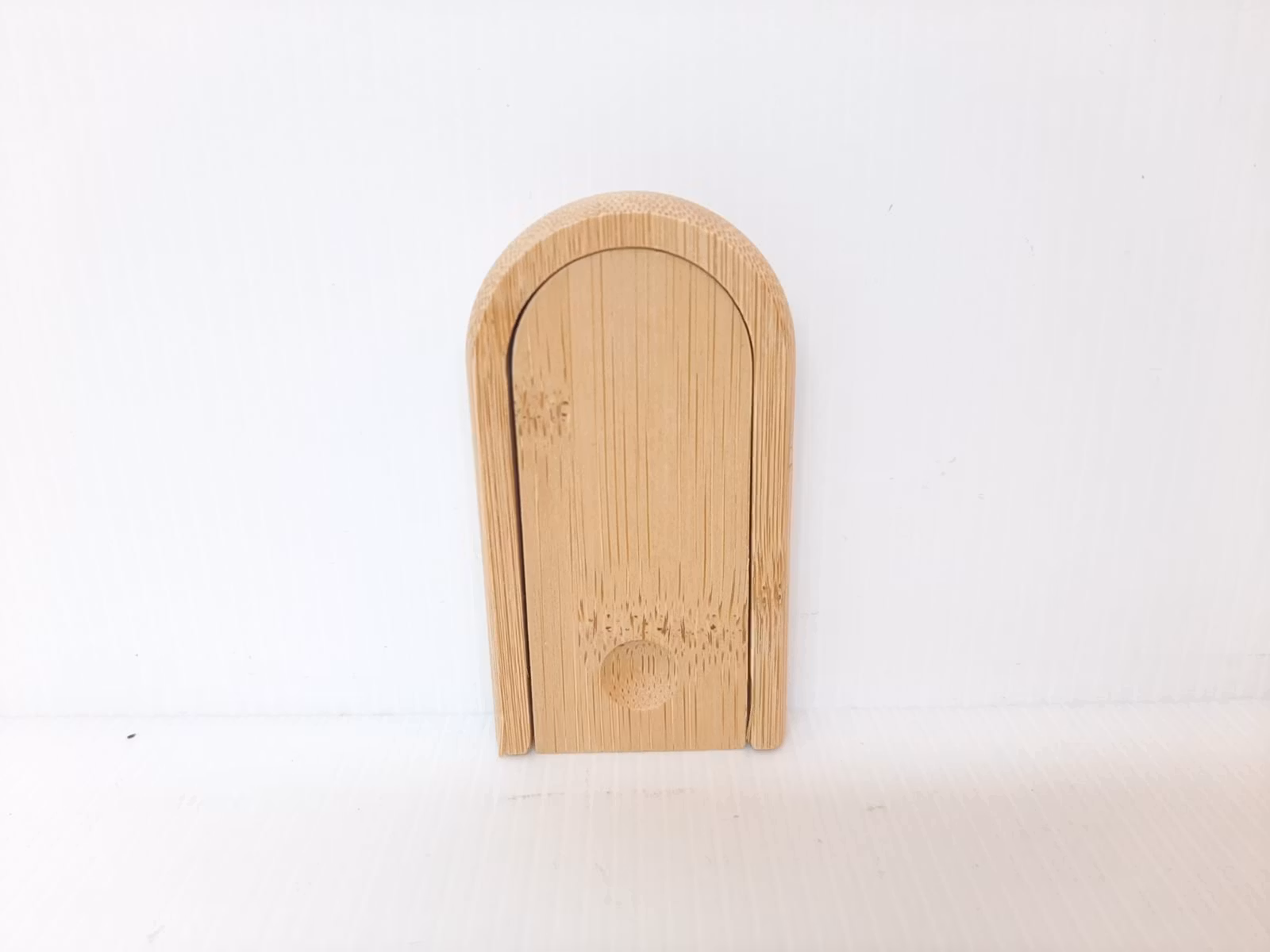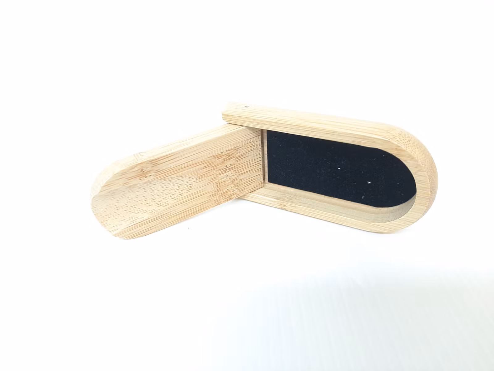 3) Ett pipställ i trä som går att fälla ihop. På insidan av pipstället finns svart lentyg.