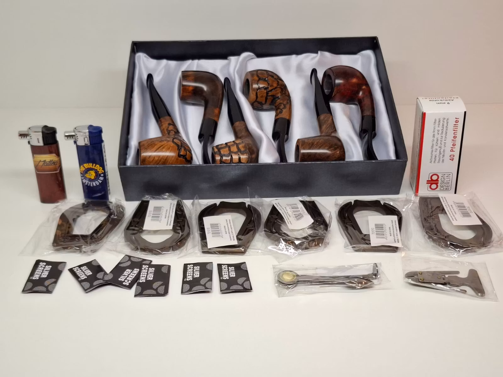 6) En förpackning pipfilter (9 mm) av det tyska märket db Berlin. Förpackningen innehåller 40 stycken pipfilter av det tyska märken DB Berlin Design. De innehåller aktivt kol och jobbar med att minska halten av tjära och nikotin vid varje rökning!