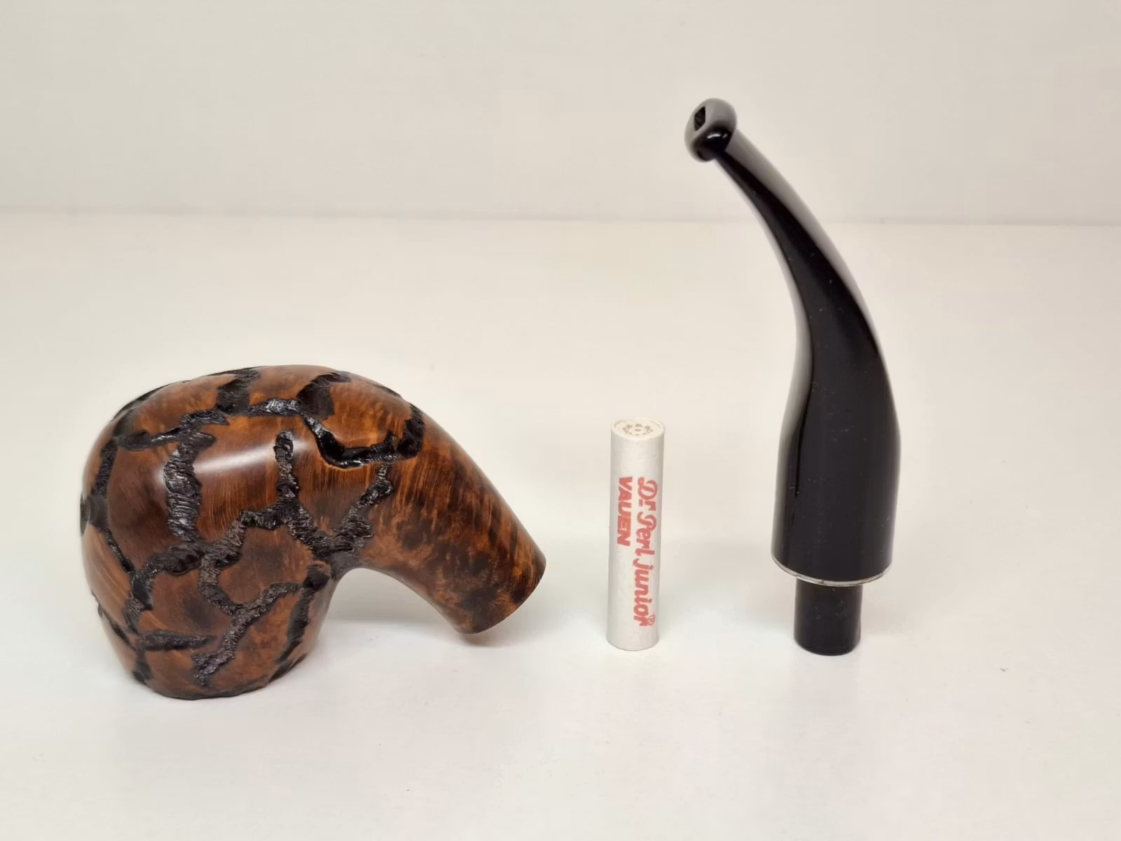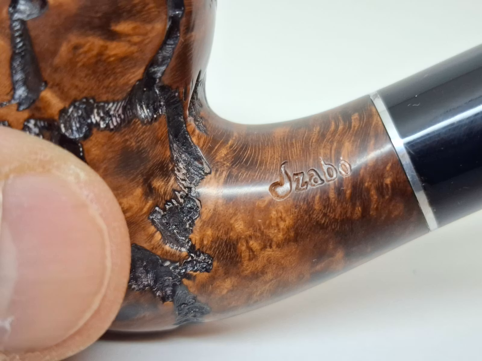 Du köper en pipa av märket Szabo. Tillverkningen av dessa pipor sträcker sig generationer tillbaks från en och samma familj i Ungern. De är tillverkade för hand och är gjorda av äkta briarträ. På sidan av pipan finns texten "Szabo" inristat.