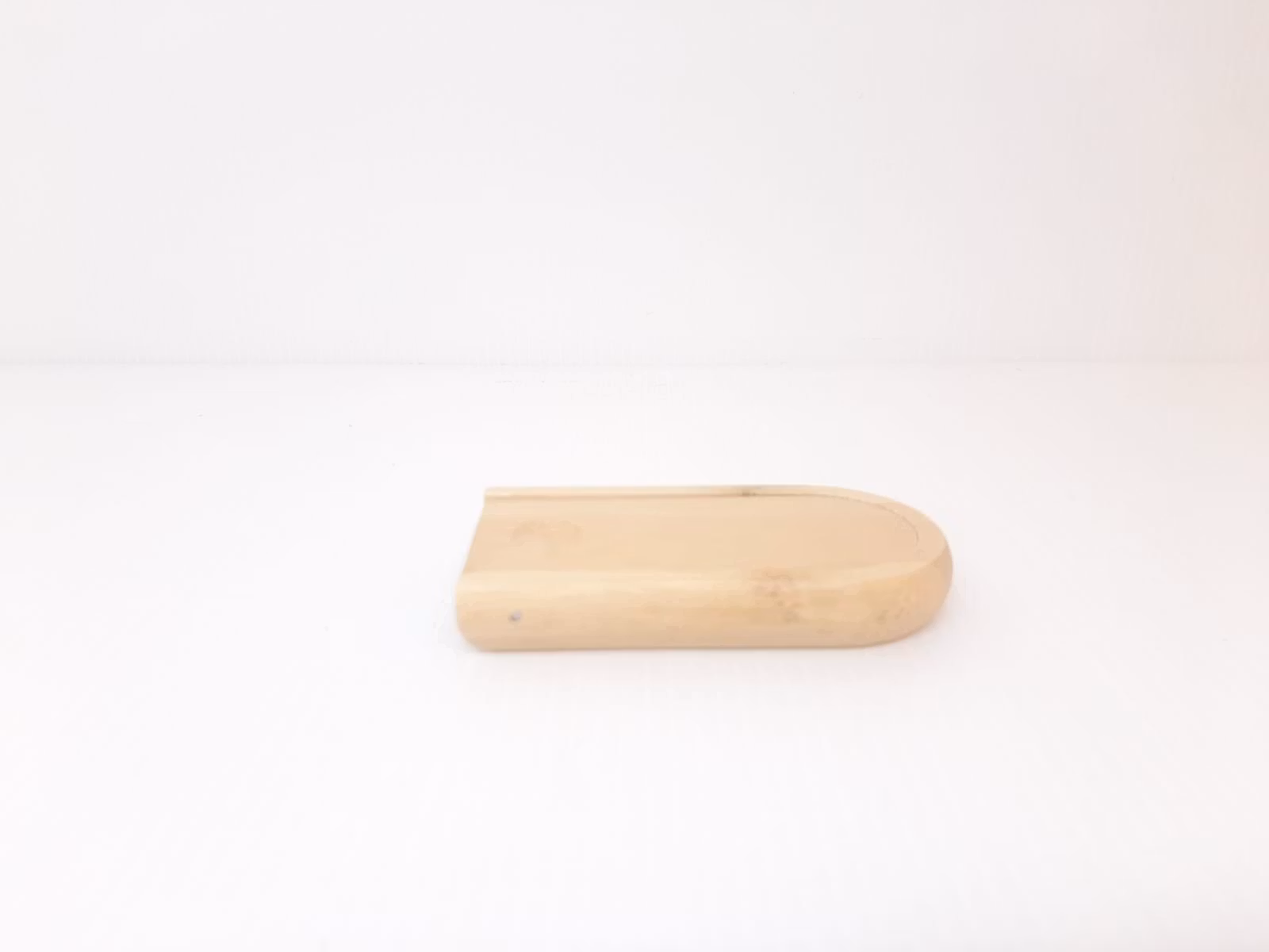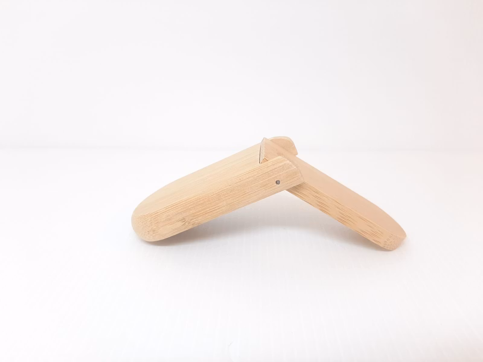 1) Ett Pipställ i trä som går att fälla ihop. Insidan av pipstället har svart len tyg.