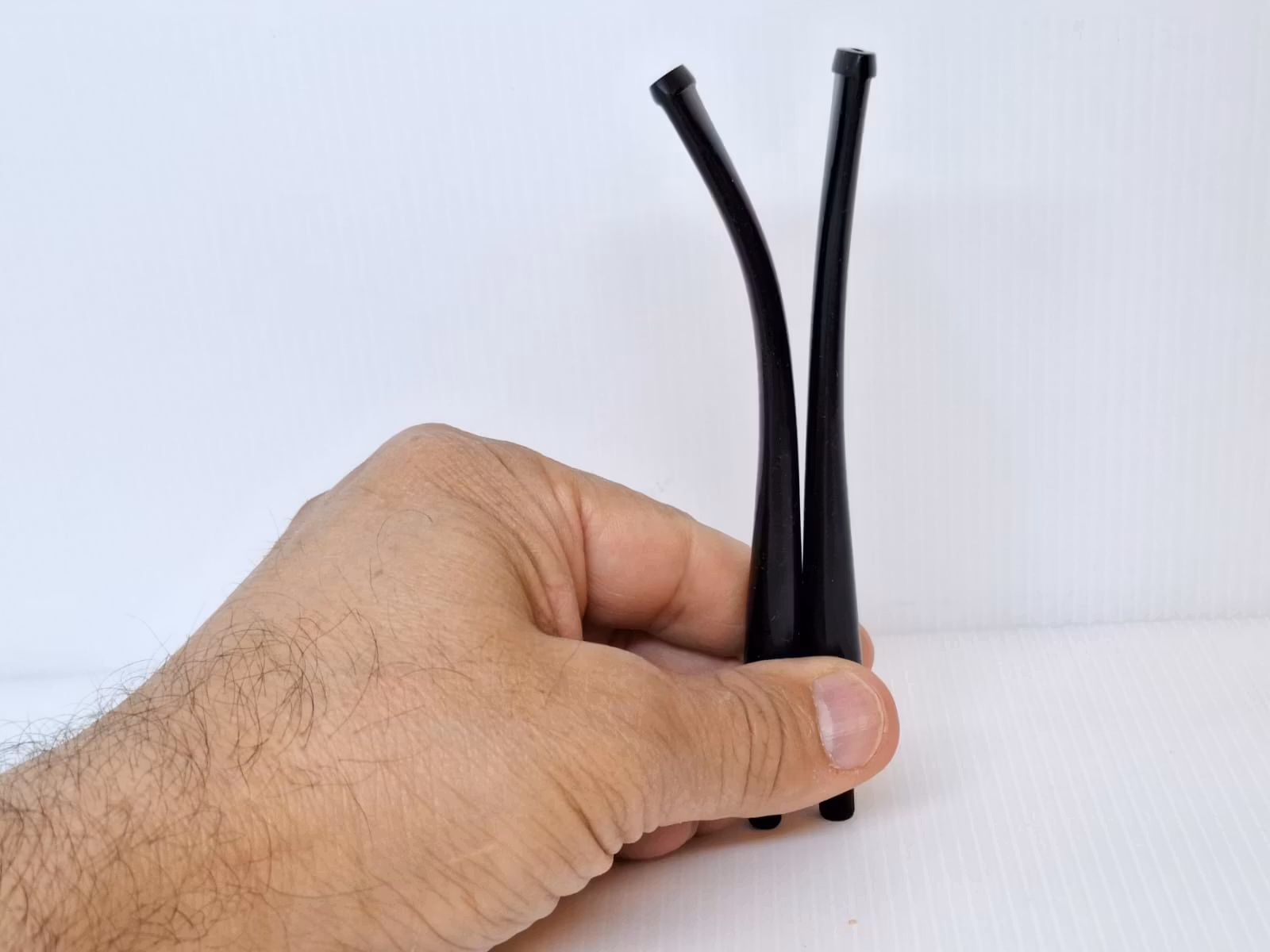 Du köper två munstycken till pipa, där det ena munstycket är böjd och det andra munstycket har en aning mindre böjning (se bilderna). Munstyckena passar bra till de som tillverkar sina egna pipor. Därför kan ingen garanti ges till kunder som köper dessa munstycken till färdiga piphuvuden. Munstyckena är tillverkad i Italien (Made in Italy) och är gjorda av akryl av bra kvalitét.