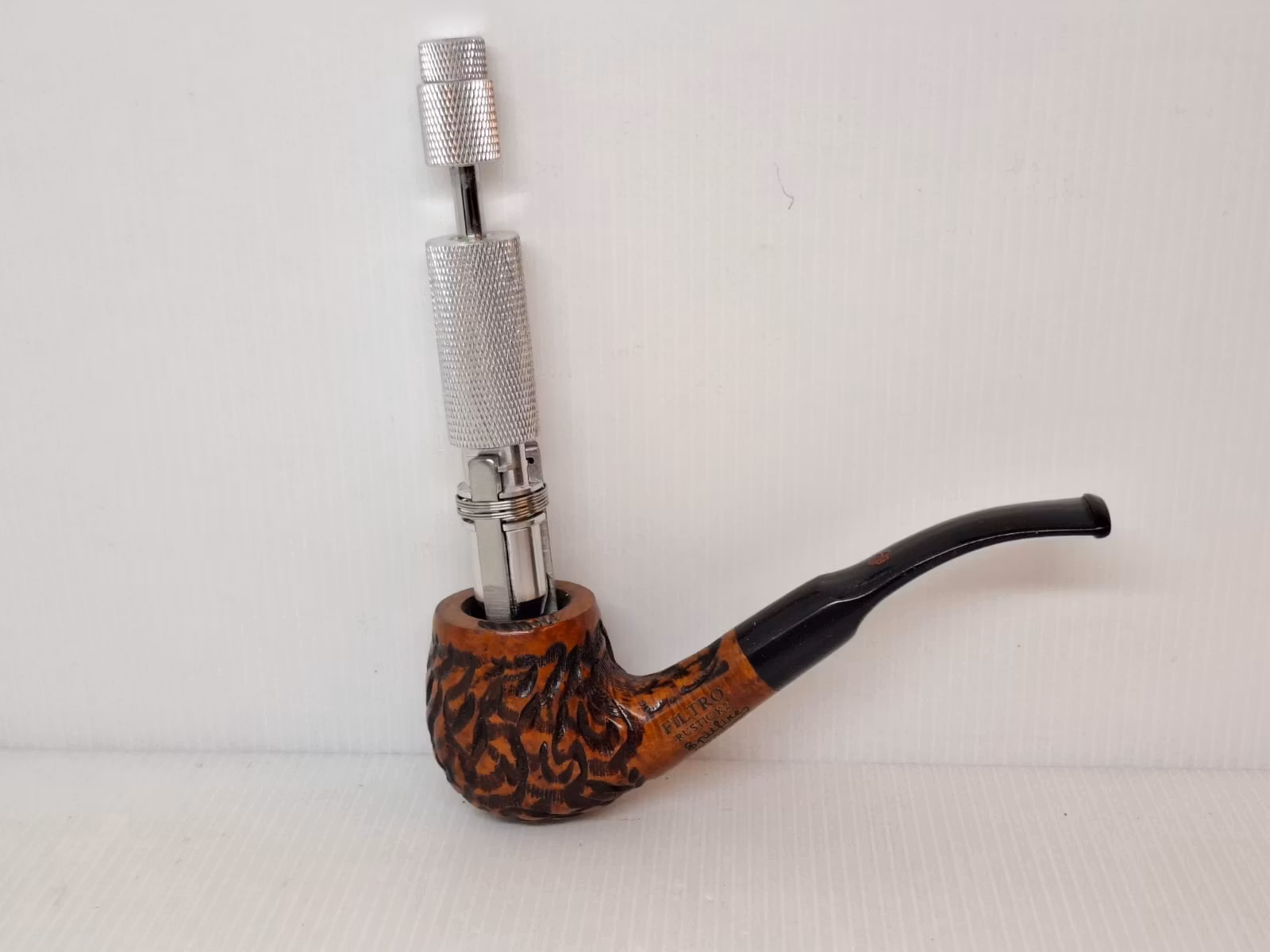 Brotschens uppgift är att hyvla bort tuffa tobaksbeläggningar som sitter fast inne i pipkoppen. Det medföljer även en handborr som man använder i rökkanalen (där själva pipmunstycket sitter). Brotschen är ställningsbar vilket innebär att den går att använda till majoriteten av pipor. Brotschen kommer i en fin ask. Notera att piporna på bilden är endast för visningssyfte och ingår inte i köpet.