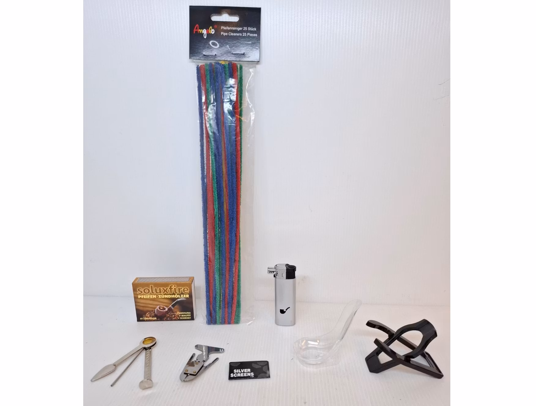 Piptillbehör: Rensare, Tändare, Verktyg, Ställ, Tändstickor, Nät, Fräs