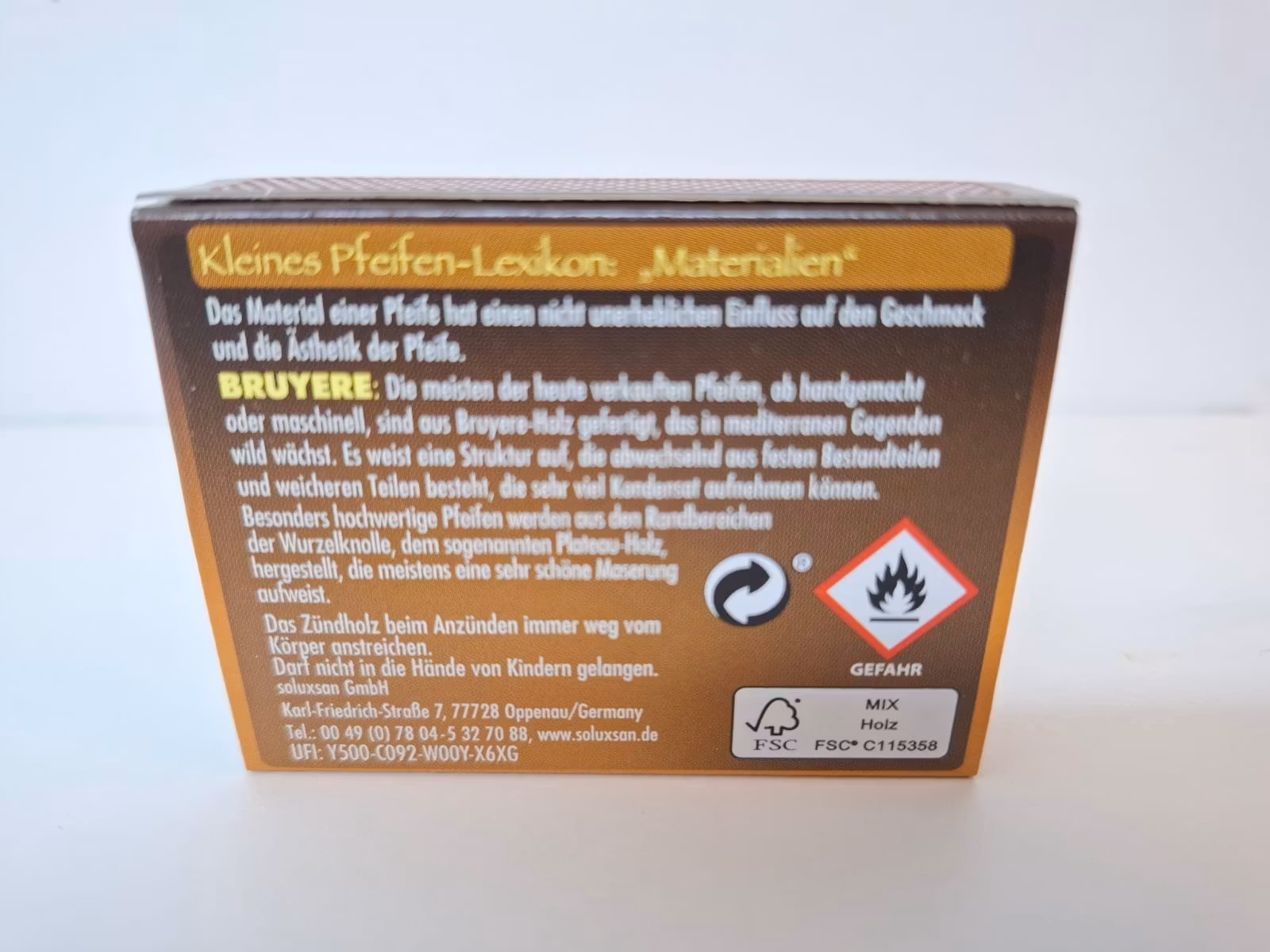 4) En ask med piptändstickor (tillverkade i Tyskland, av aspträd som brinner längre)