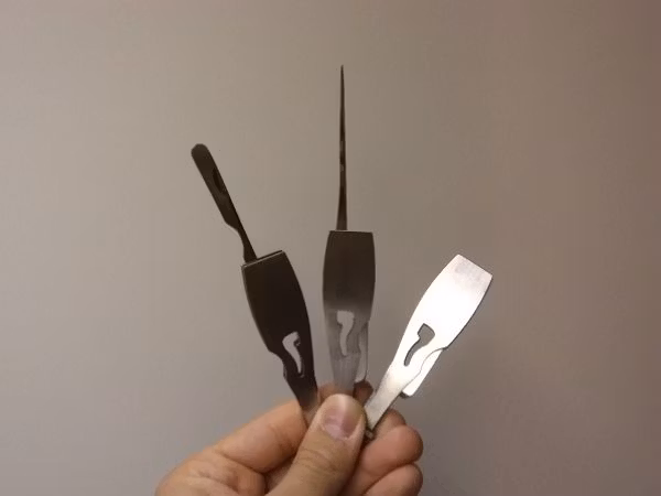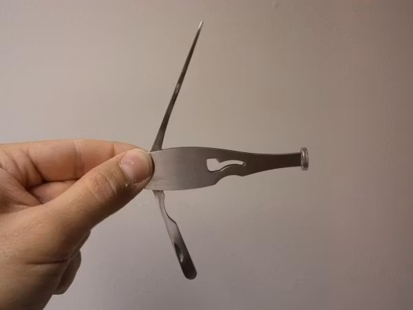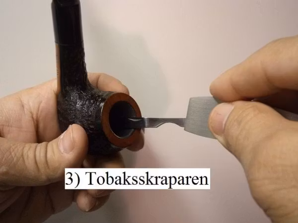 3) Tobaksskraparen --> Skraparen tar man till för att skrapa bort resterande tobak. Används när man har rökt klart. Skraparen har en väldigt vass yta.