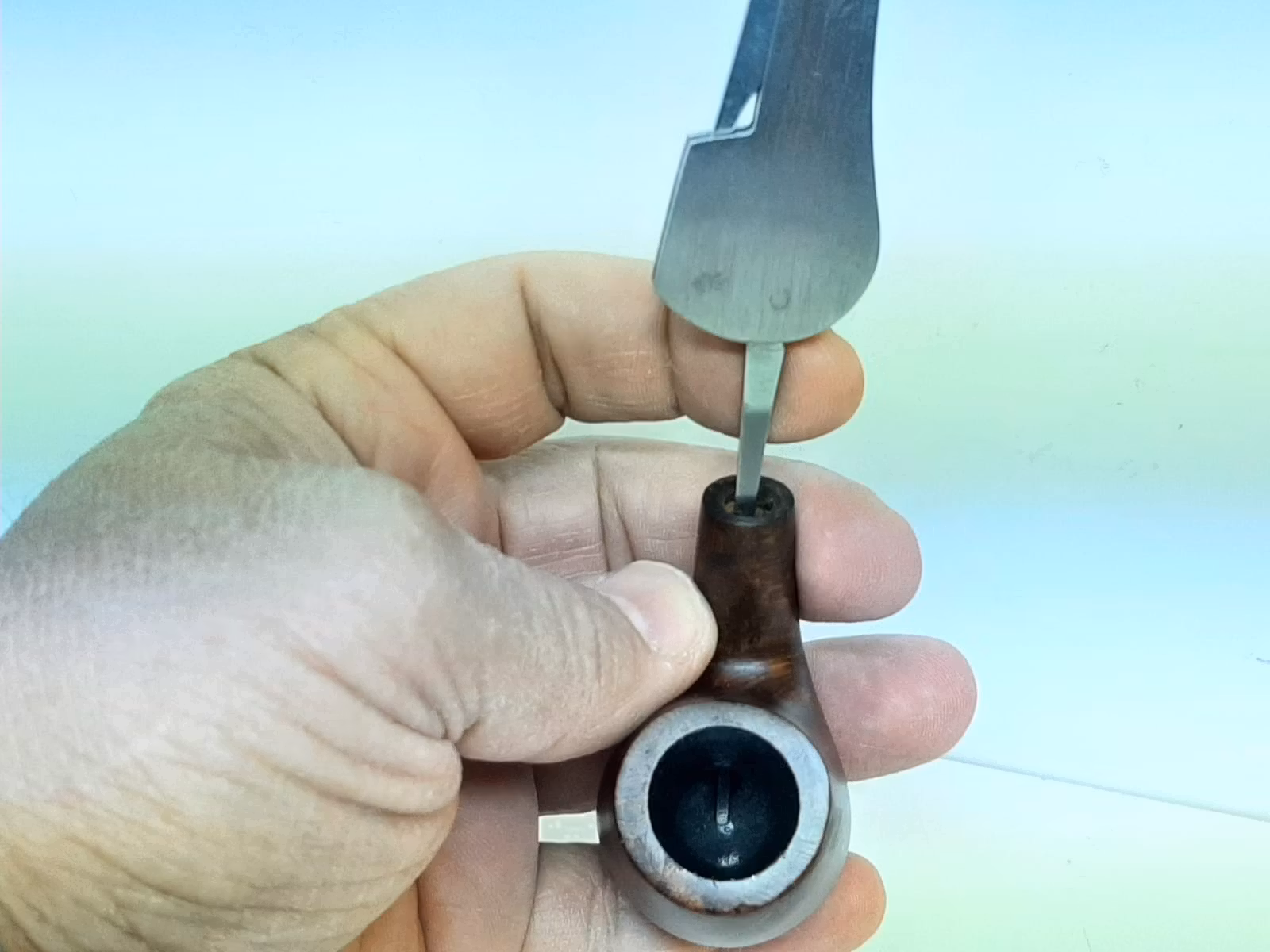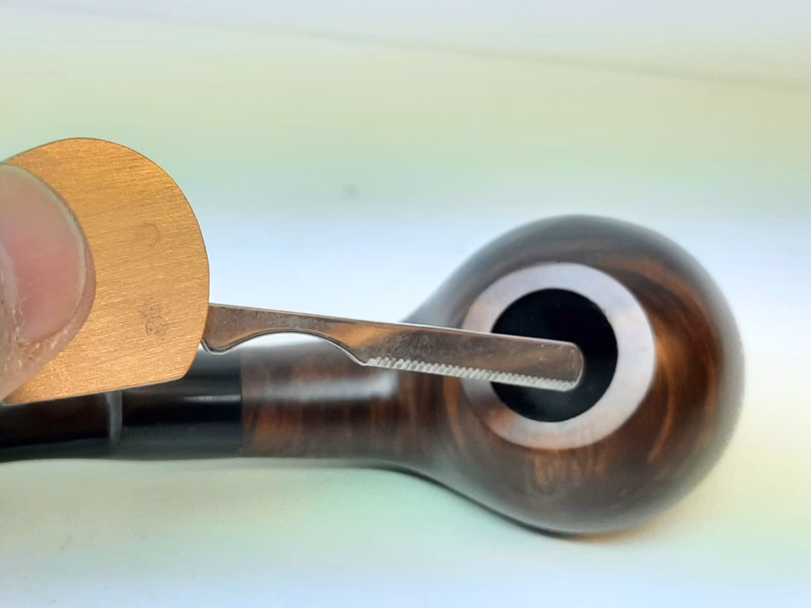 2) Tobakslösaren (eller pekaren) --> Skulle man ha råkat packa tobaken alltför hårt med tobakspressaren så tar man till tobakslösaren och rör om tobaken i pipkoppen för att kunna lösa upp tobaken lite grann. Tobak som är för packad / komprimerad leder till att man inte kan suga in luft genom pipmunstycket och pipan slocknar (på grund av brist på luft). Pekaren är spetsigt och vass. Går också att få bort lös tobak i munnen på pipkoppen.