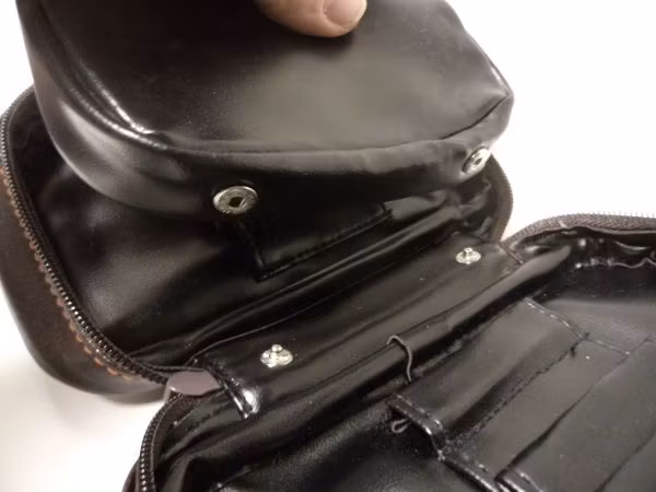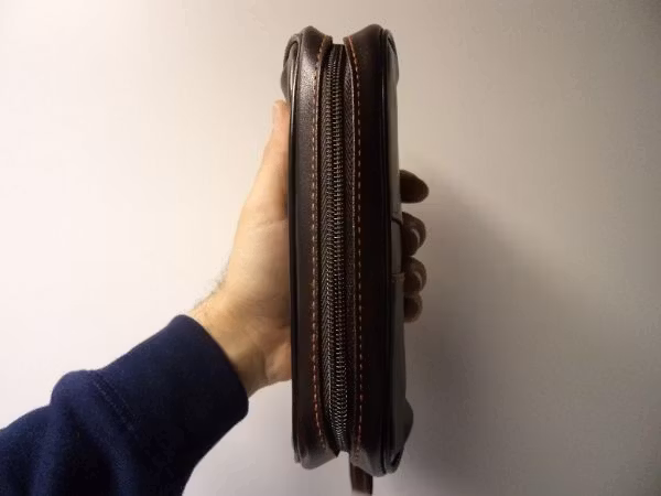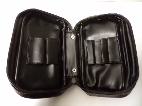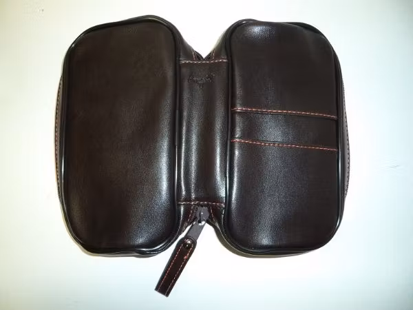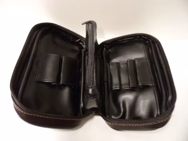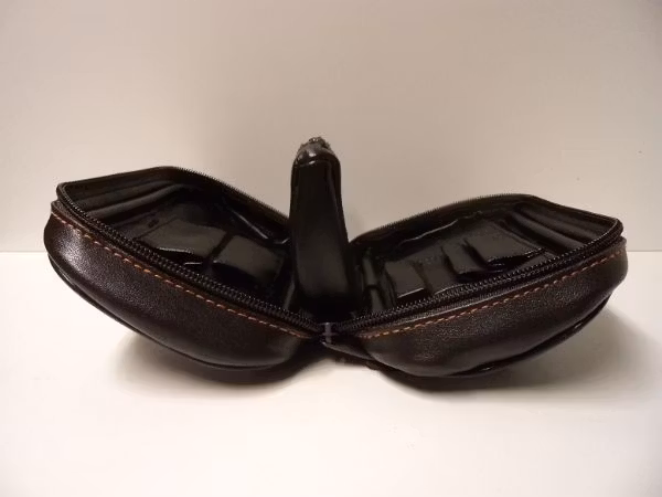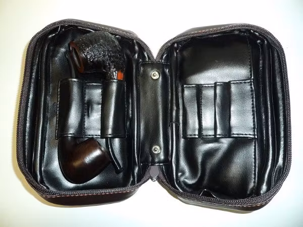 Du köper en pip väska av det tyska märket Angelo. Den har plats för två pipor. Väskan har också andra fack med plats för diverse piptillbehör. Inuti pipväskan finns även en löstagbar tobaksväska. Notera att piporna på bilderna är för visningssyfte och ingår ej i köpet.