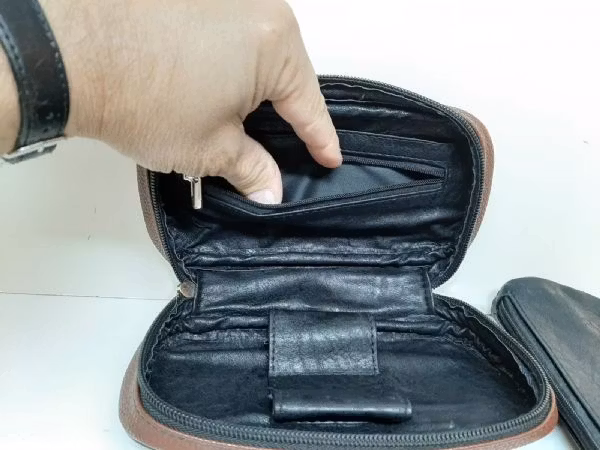 Du köper en brun pip väska av det tyska märket VAUEN. Väskan har plats för två pipor och tillbehör. Inne i pipväskan så finns en tobaksväska där du kan förvara din tobak. Tobaksväskan går att ta lös från pipväskan då den sitter fast med hjälp av en magnet.