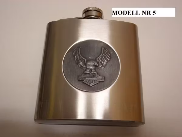 Plunta Emblem 149 kr VÄLJ DITT KÖP Modell: Slumpmässig Modell: 3 Modell: 4 Modell: 5 Modell: 6 Modell: 7 Modell: 8 FINNS I LAGER LÄGG I VARUKORGEN Artikelnummer: 13302 Produktinformation Du köper en plunta med olika motiv. Pluntan rymmer ca 17 cl (6 oz).Höjd: 11 cmBredd: 9 cmMaterial: Rostfritt stål
