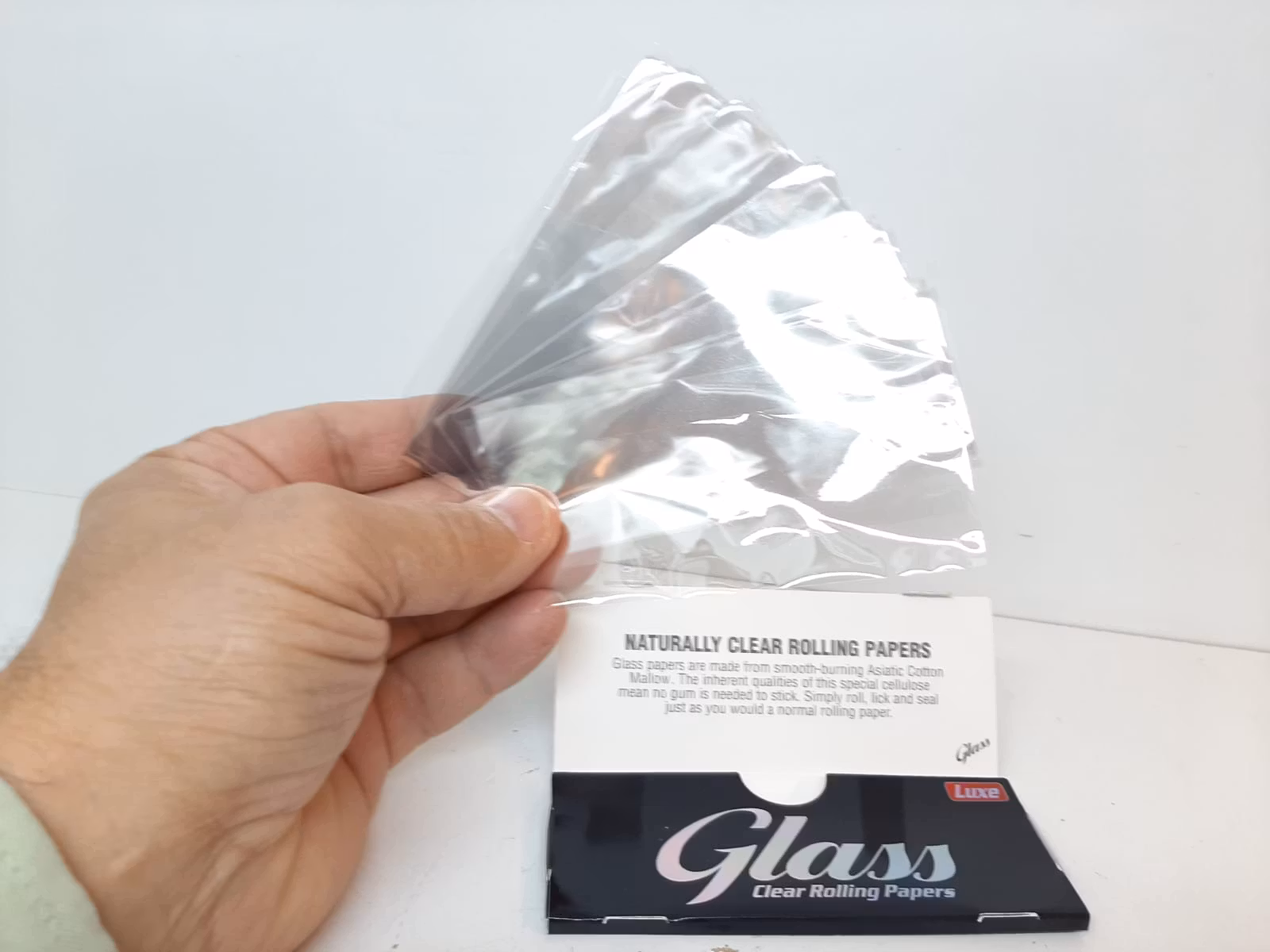 Du köper fyra förpackningar av märket GLASS som innehåller genomskinliga rullpapper. Dessa rullpapper är tillverkade av asiatiska bomullsplantor (Malva). Tack vare denna unika planta så behövs inget klister för att pappret skall kunna rullas fast, Du rullar, slickar och klistrar fast, precis som med vanliga rullpapper.