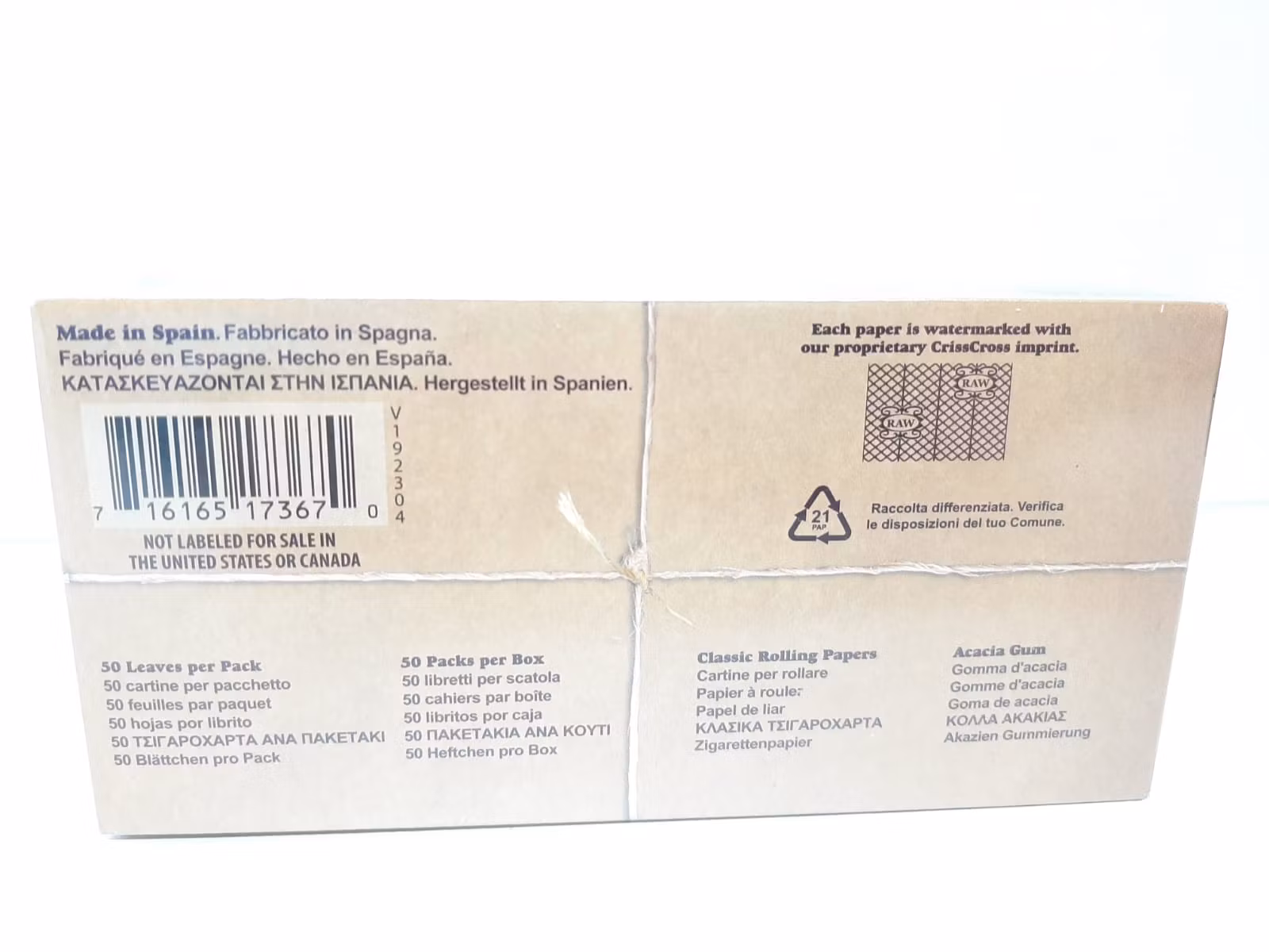 Du köper En display RAW Mini. Displayen innehåller 50 förpackningar. Varje förpackning har 50 papper. Dessa papper är ultratunna och är naturlig och innehåller inga tillsatser! Det medföljer en tändare (skickas i slumpmässig färg/motiv).