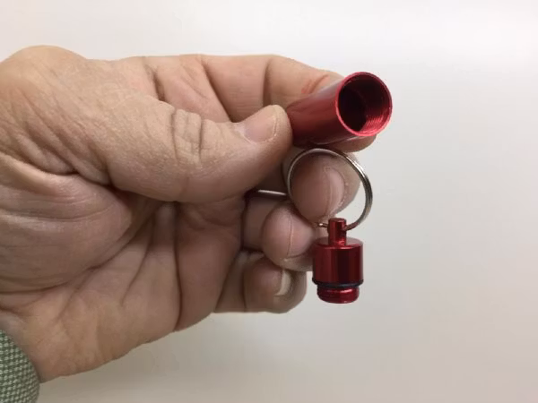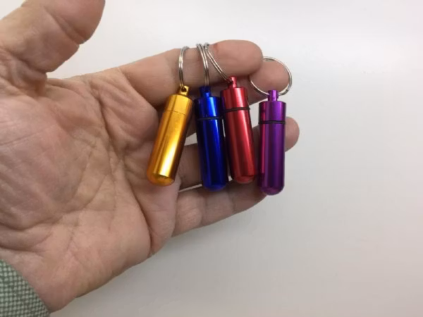 Du köper en förvarare / stash. Den kommer med en nyckelring. Notera att vi skickar behållaren i slumpmässig färg.
