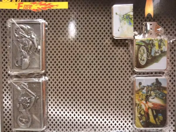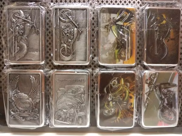 Du köper en hel display innehållande 12 bensin tändare med tema av motor cykel.