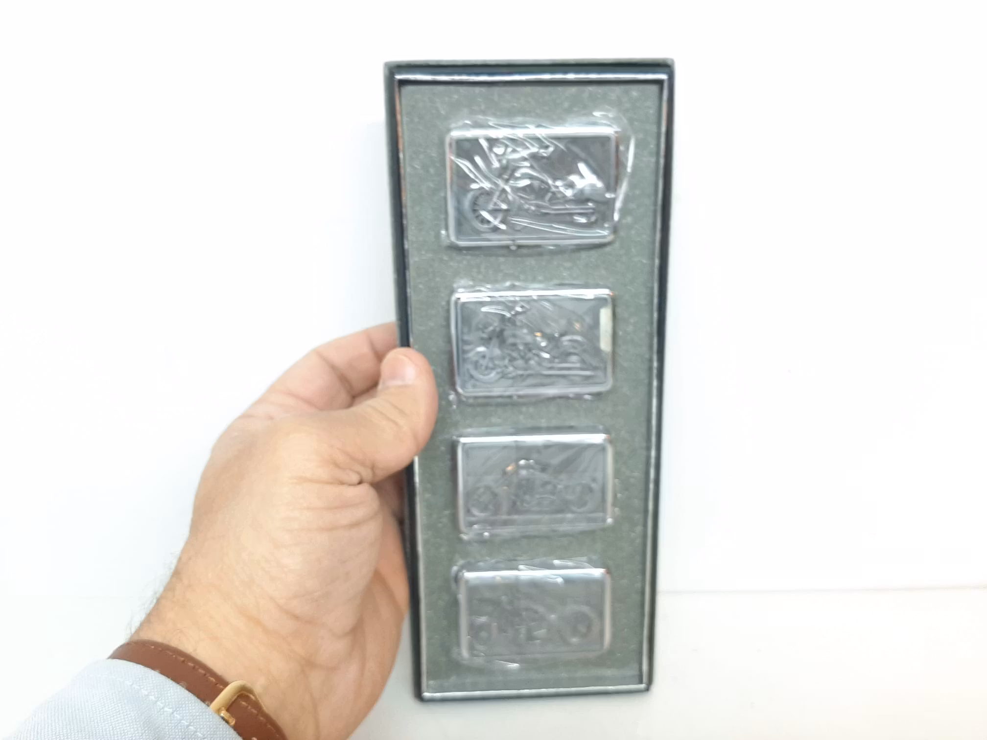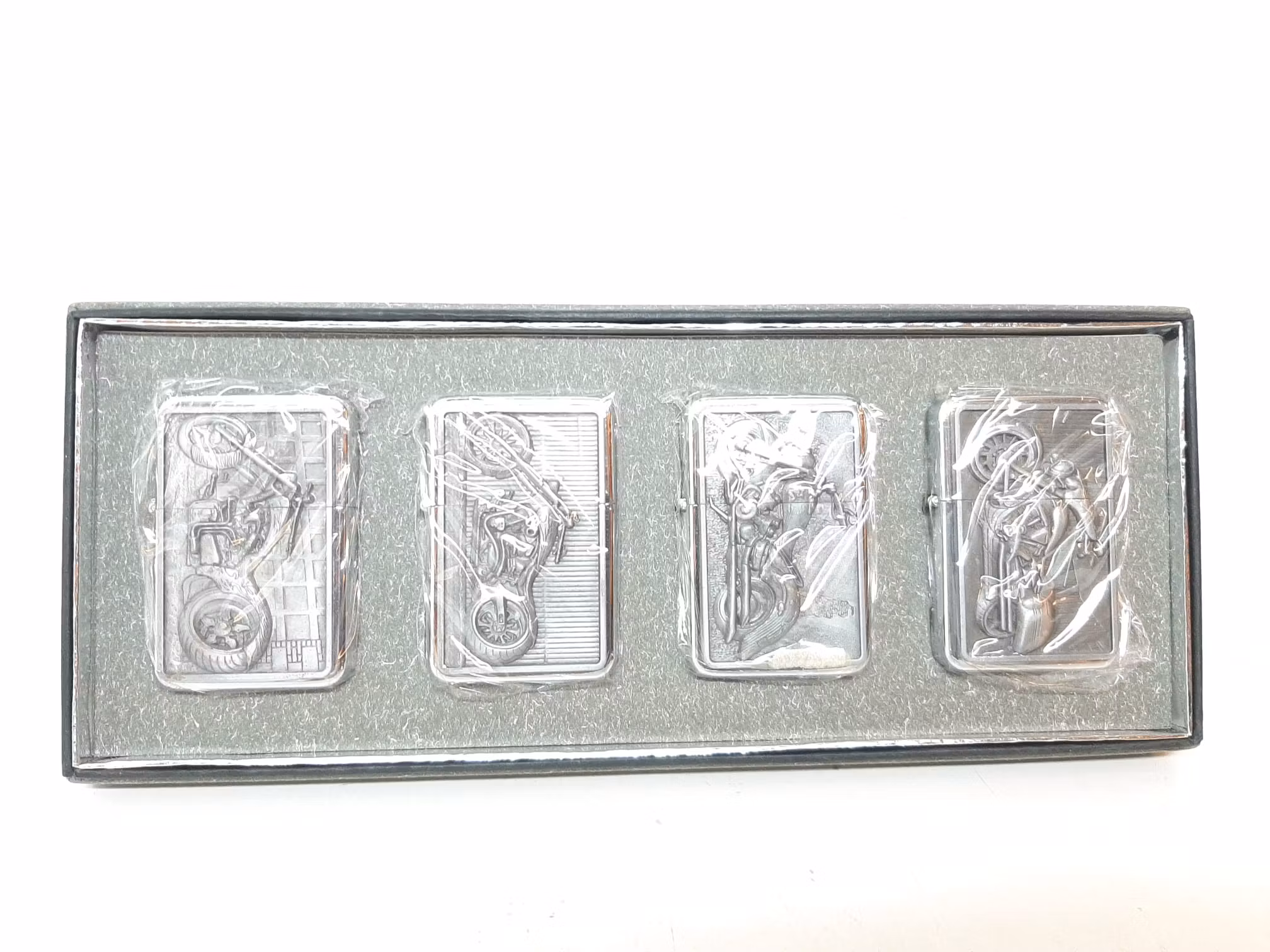 Du köper en display innehållande 4 bensin tändare med motorcykel-tema.