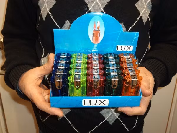Du köper fem stycken tändaren med två olika lågor. Den ena knappen ger en stormlåga och den andra knappen ger en vanlig, klassisk låga.