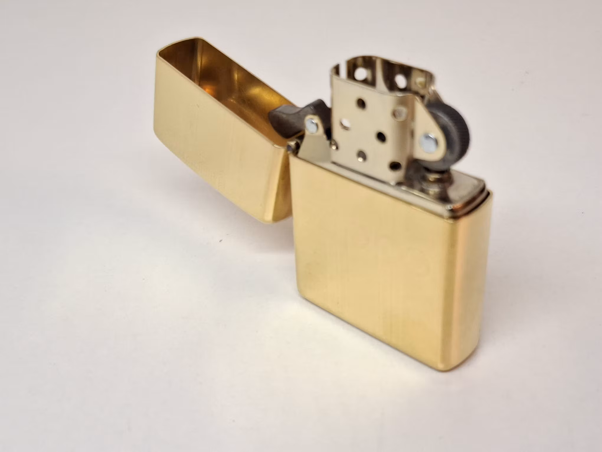 Du köper en äkta Zippo tändare som kommer guldfärgad. Den är tillverkad i USA och har stämpeln "MADE IN USA" tryckt på undersidan. Tändaren kommer i en original ask från Zippo.
