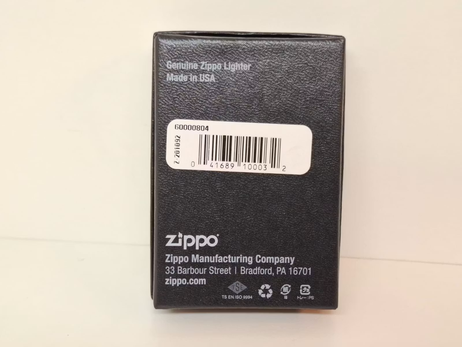 Du köper en äkta Zippo tändare med en borstad yta. Den är tillverkad i USA och har stämpeln "MADE IN USA" tryckt på undersidan. Tändaren kommer i en original ask från Zippo. Inga tillbehör medföljer.