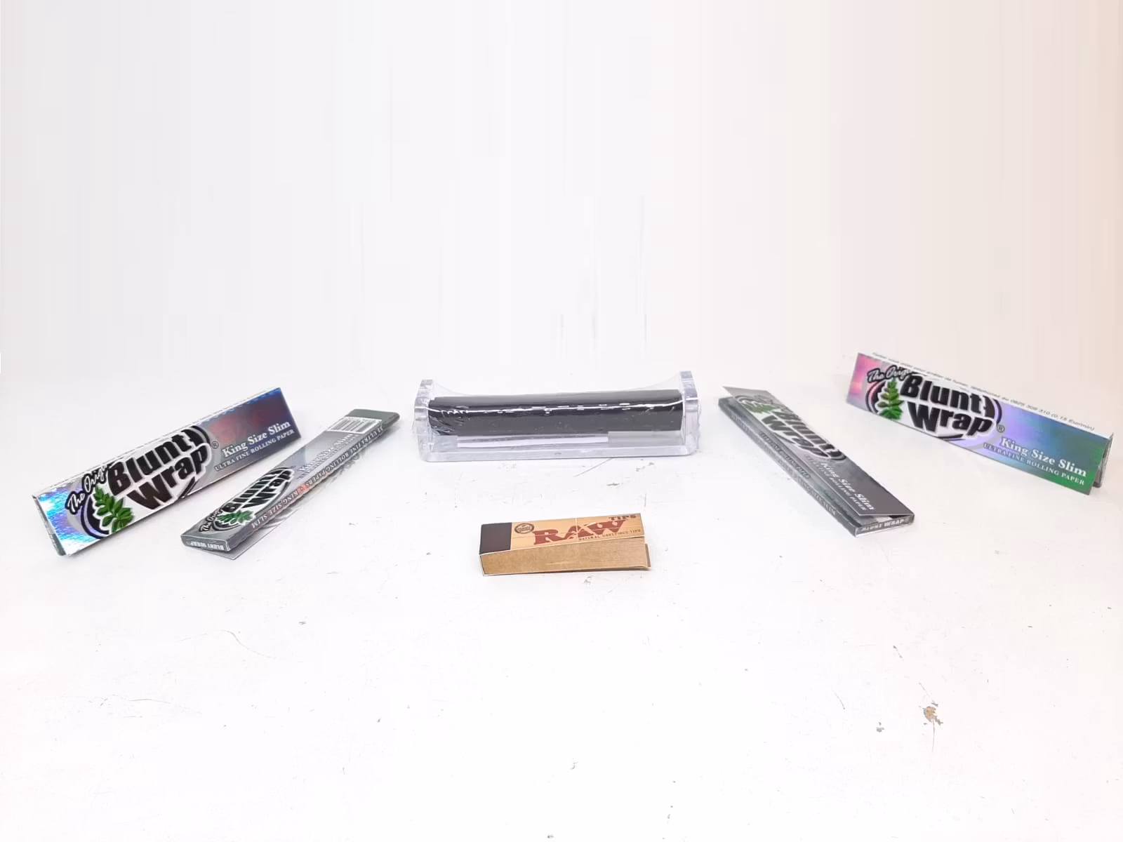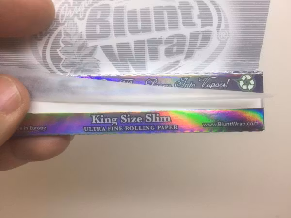 2) Fyra förpackningar Bluntwrap Slim rullpapper. Rullpapprena är 110 mm långa. Varje förpackning innehåller 33 rullpapper. Bluntwrap är tillverkade i Frankrike, är gjorde av hög kvalité och innehåller inga kemiska tillsatser.