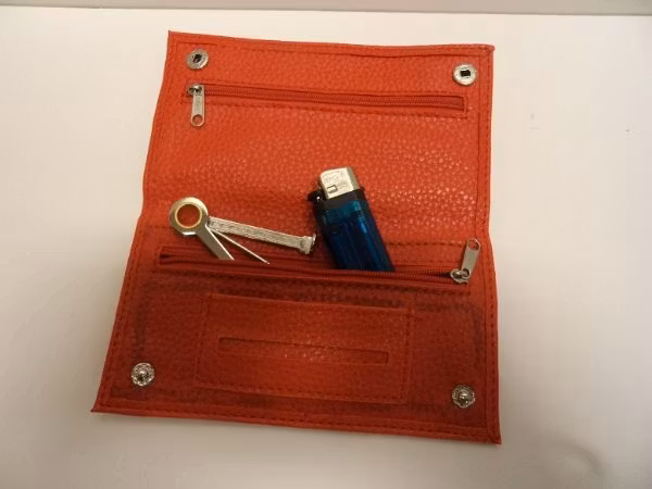 Du köper en lite större tobaksväska med plats för rulltobak, rullpapper, filter och annat.