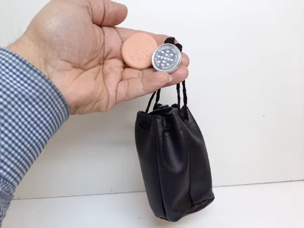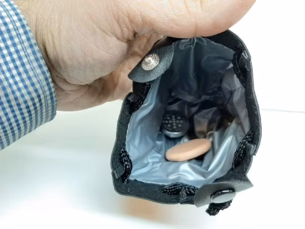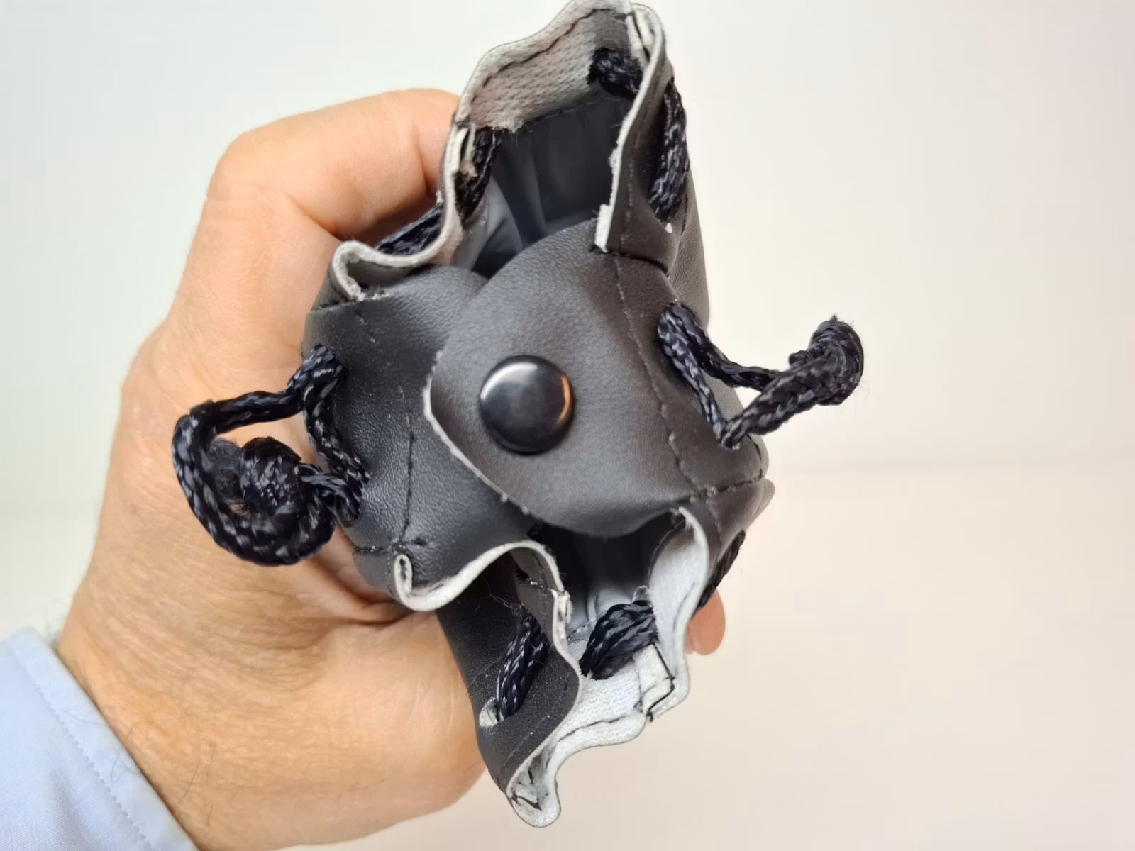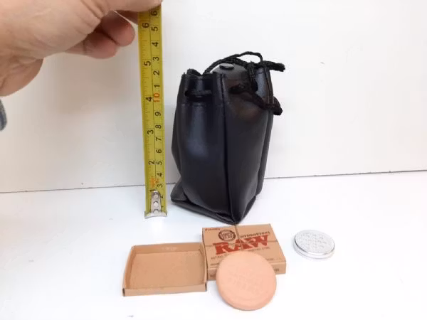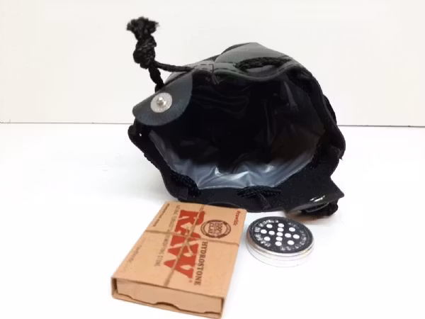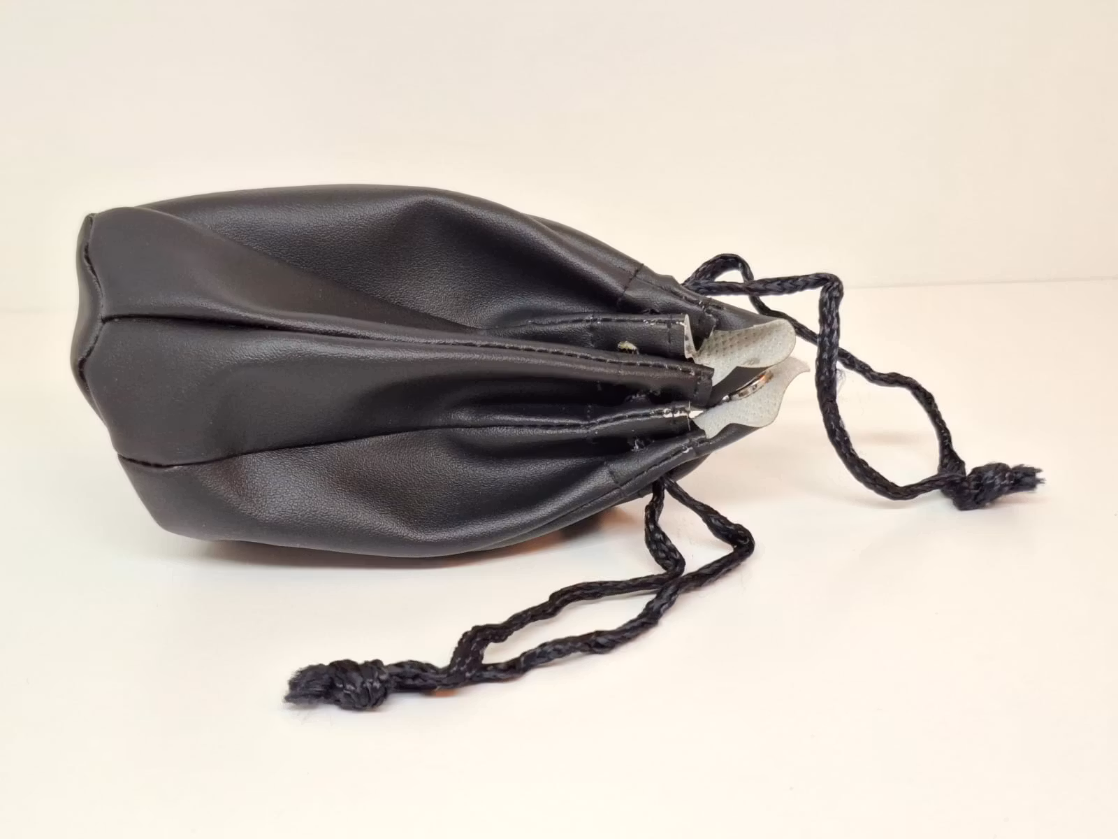 1) En väska / pung för förvaring av tobak (tillverkad av syntetiskt läder med skyddande plast på insidan)