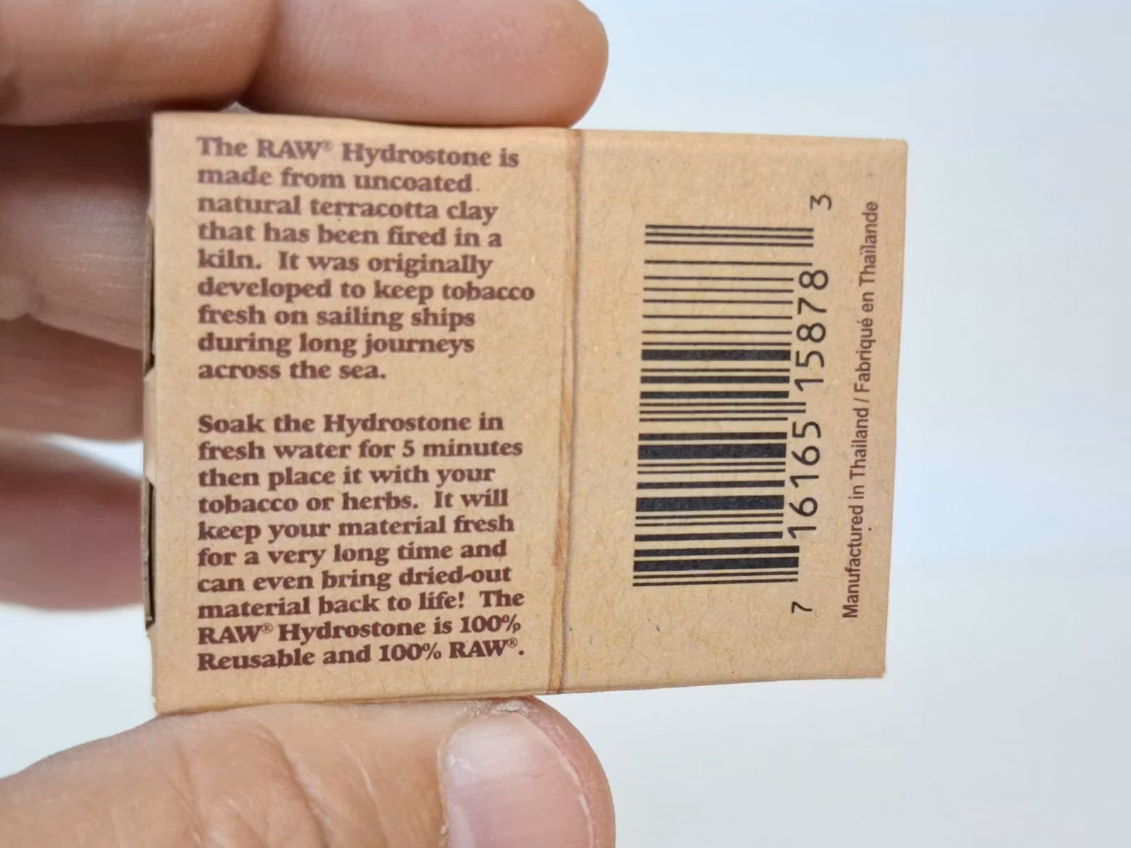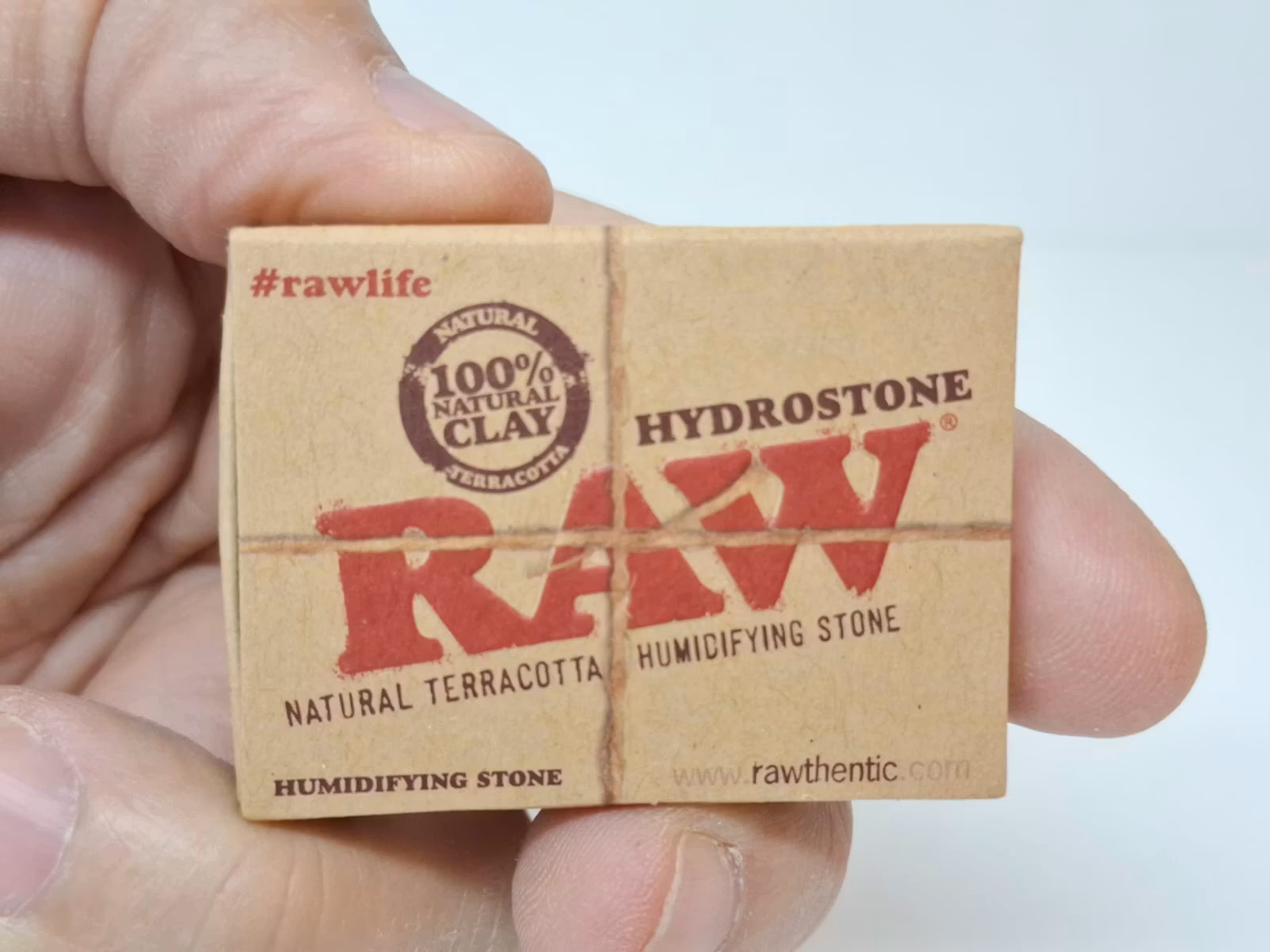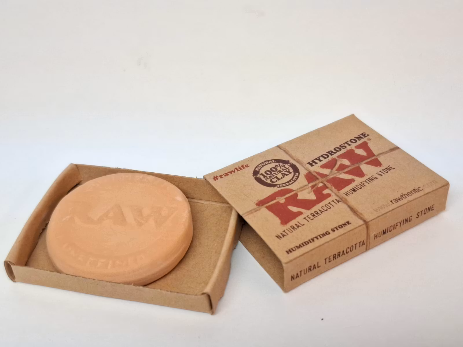 2) En fuktsten av märket RAW. Denna sten är till för att hålla tobaken fräsch och fuktig. Dränk stenen i vatten i cirka 5 minuter och placera sedan stenen i önskad tobaksförvaring (i tobakspungen exempelvis).