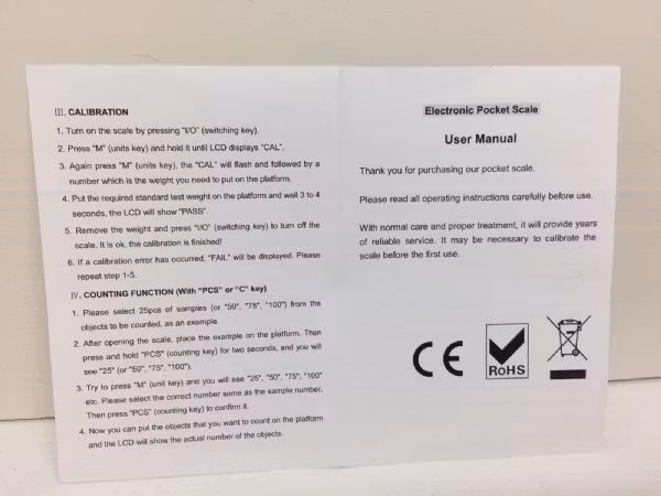 Du köper en digital våg med dimensionen 100 / 0.01 gram. Färg och utseende på vågen kan skilja och skickas slumpmässigt till kund (se bilder).