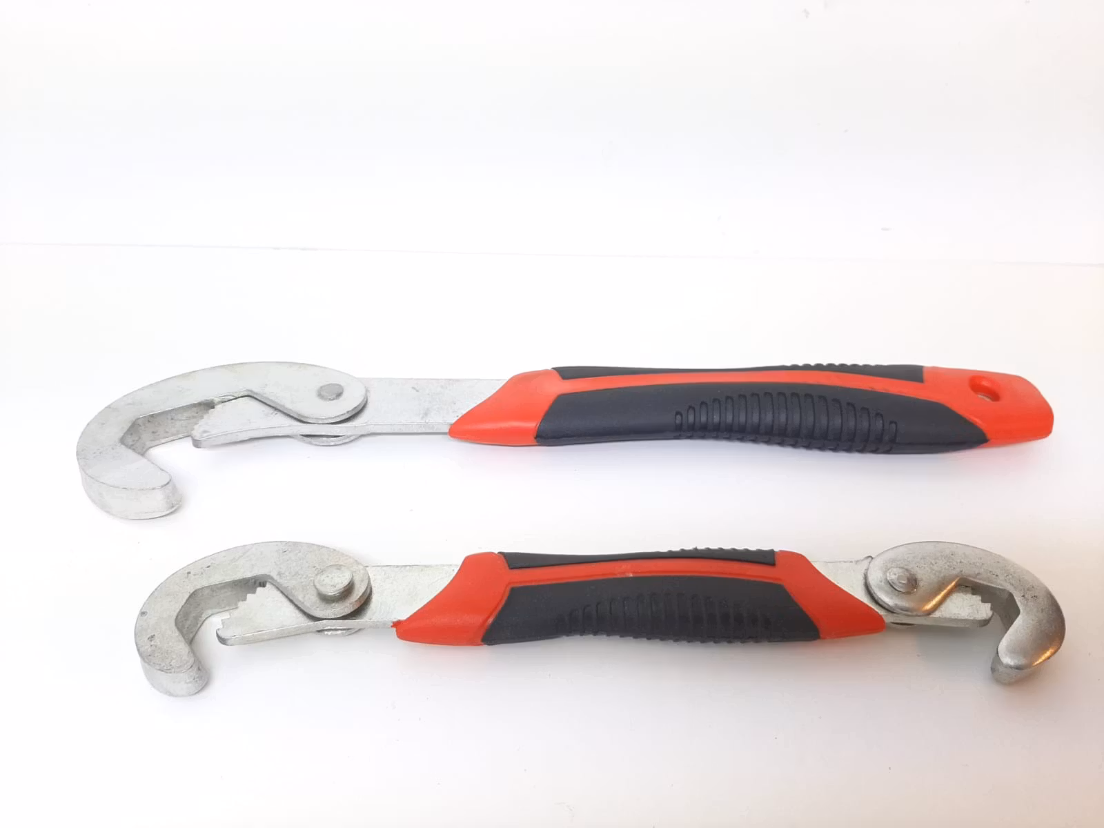 Du köper ett set som innehåller två skiftnycklar som anpassar sig till alla sorter bultar och muttrar, tack vare sin unversiala storleksjustering.